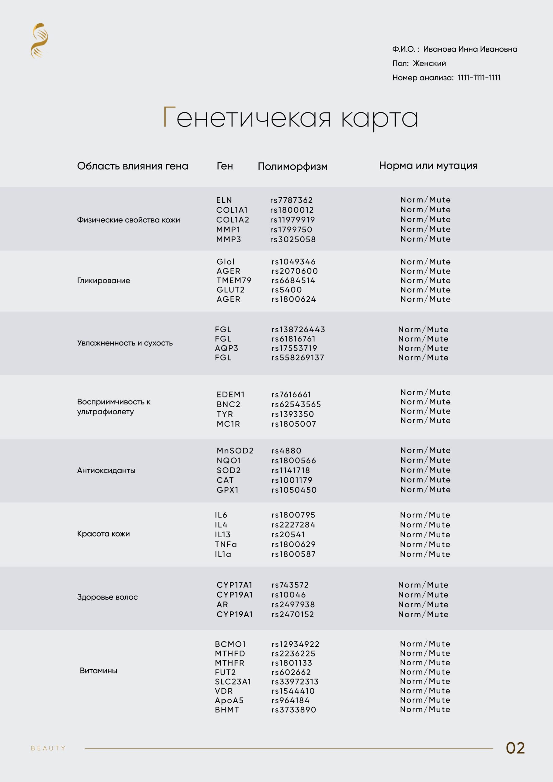 | Пример отчета DNABeauty | Пример отчета Wellness |