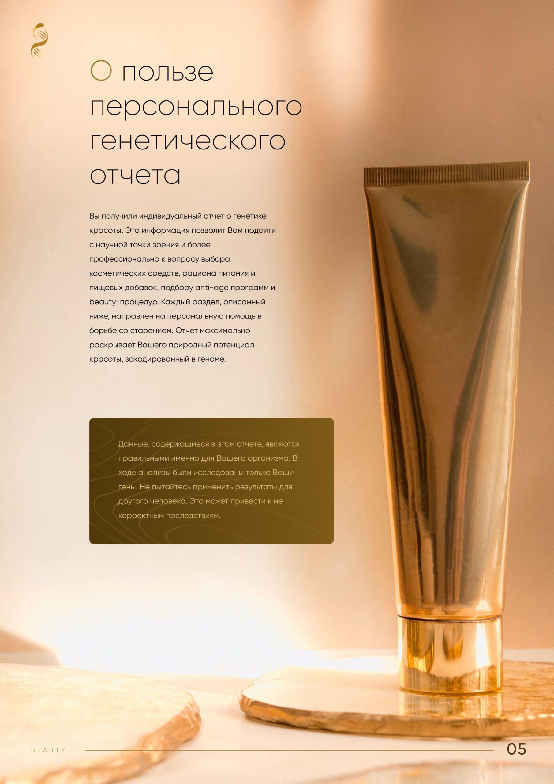ДНК-тест для красоты и молодости поможет определить особенности именно вашего организма и даст возможность прогнозировать возрастные изменения.
