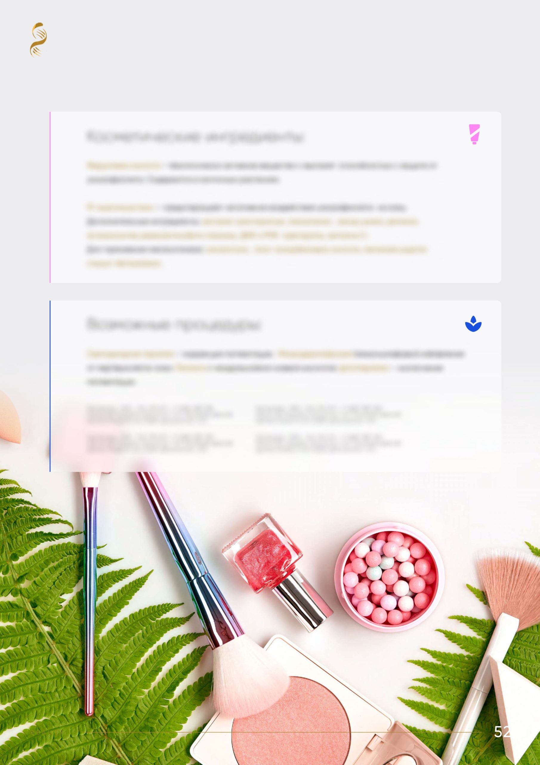 - Рекомендации по косметологическим процедурам (можно ли делать пилинги, какие выбрать филлеры, эффективны ли для вас инъекции гиалуроновой кислоты и мезотерапия).