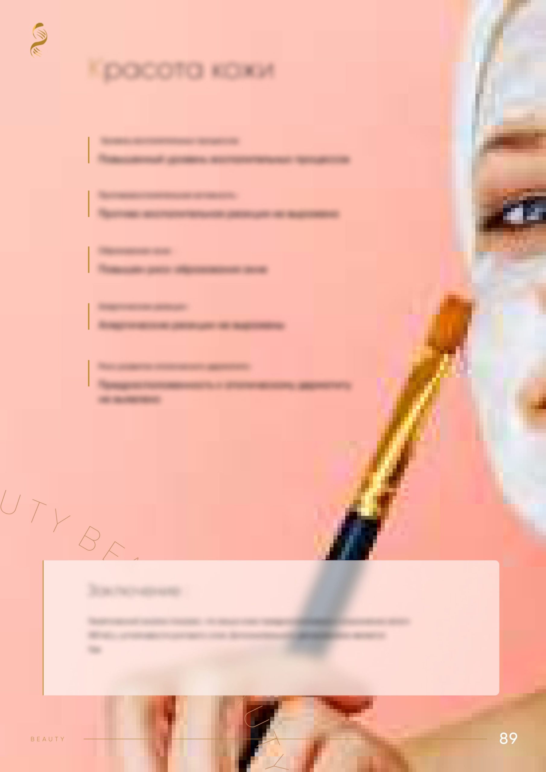 - Красота кожи. Появление аллергических реакций, воспалительных процессов в коже, реакция на «агрессивные процедуры».